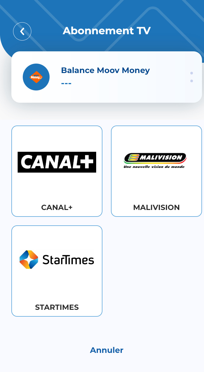 Avec Moov Money, payez vos abonne TV sans me déplacer. Très pratique, il me permet de reconduire à tout moment mon abonnement :
