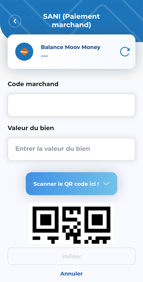 Le Paiement Marchand SANI, permet aux abonnés Moov Money de régler leurs achats via leurs comptes chez nos partenaires marchands de biens et de services.