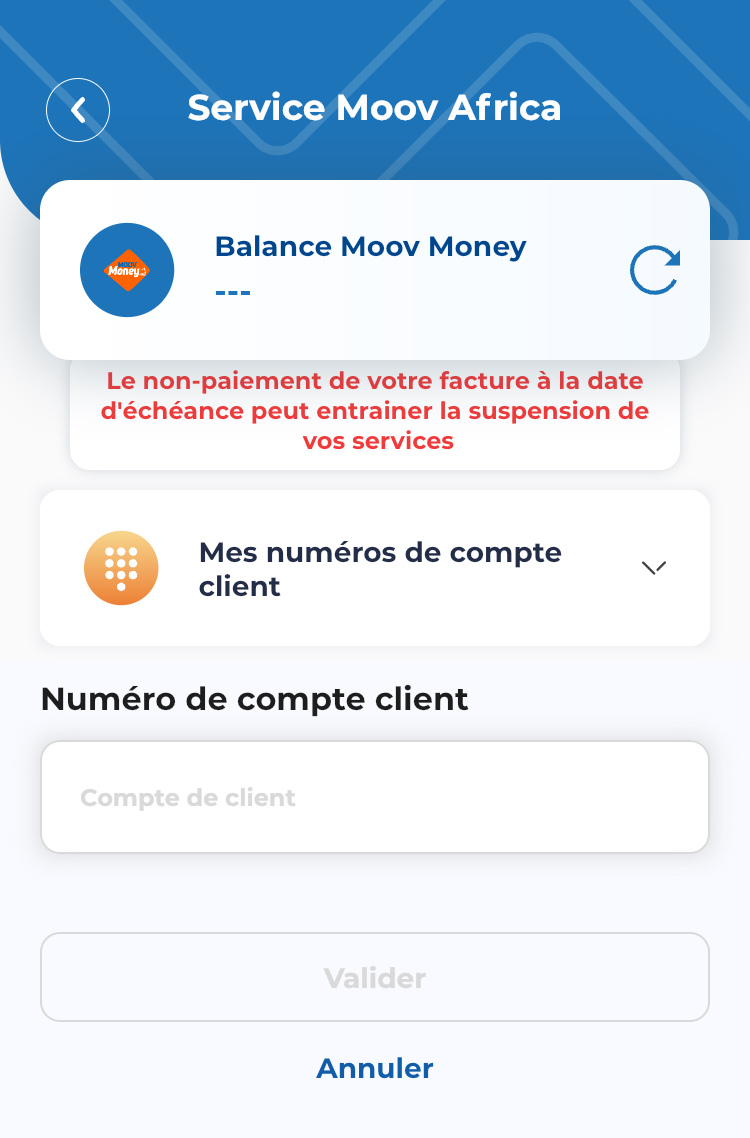 Rendez-vous sur l’application My Moov dans la rubrique Autres opérations Moov Money